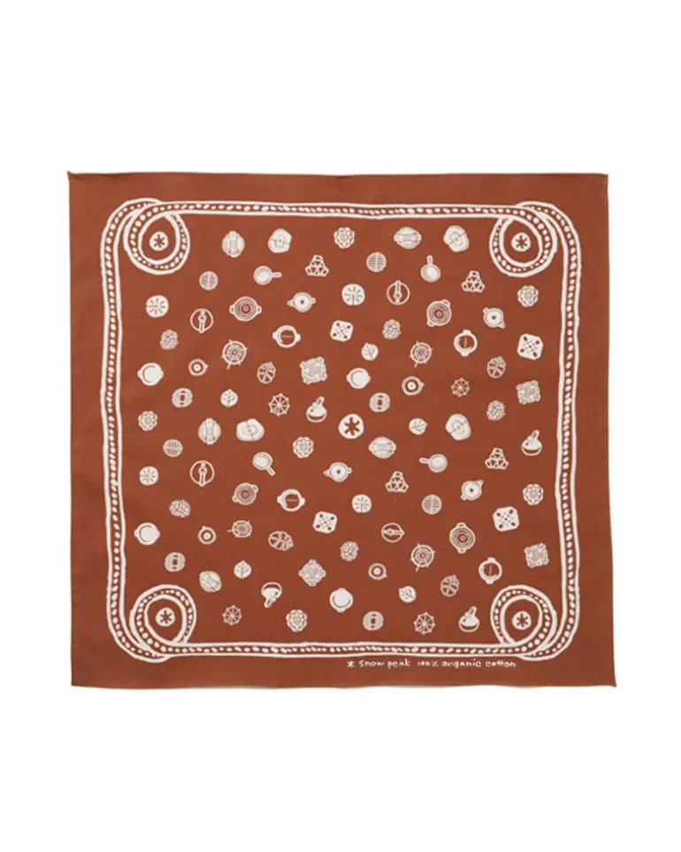 The Organic Cotton Dot Bandana is hand-printed and made of 100% cotton. Each one features illustrations of Snow Peak’s essential camping accessories.