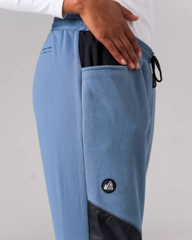 The Hybrid Fleece Pants are light, insulated bottoms with stretchable materials. The pants feature an elastic waist with a drawcord, dual pockets at the waist, and a paneled fabric design.
