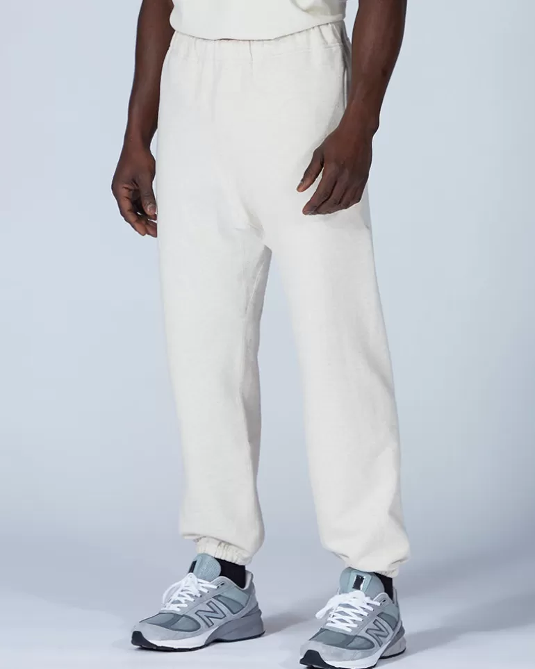 The Recycled Cotton Sweatpants are casual cotton pants. They are made of soft upcycled cotton. The Recycled Cotton Sweatpants feature a cinched waist, straight leg, ribbed cuff, and back pocket.