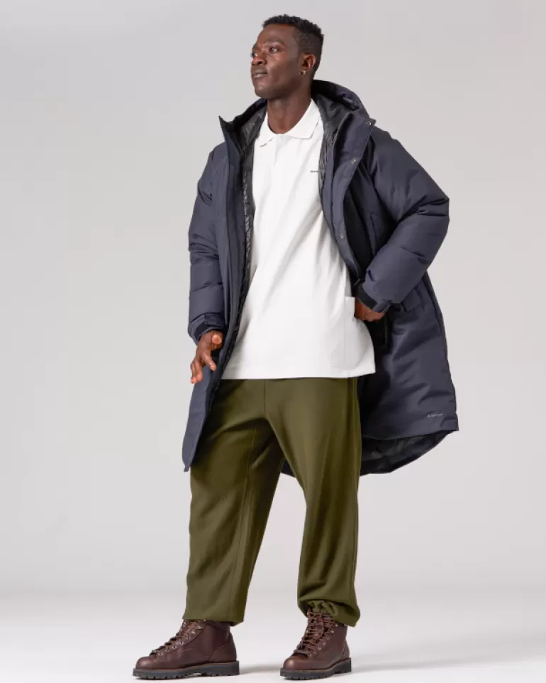 The Fire-Resistant 2 Layer Down Coat is a durable, insulated long coat. The coat offers wind resistance, water resistance, and fire resistance from recycled ripstop polyester and aramid fabric. The Fire-Resistant 2 Layer Down Coat has an adjustable hood, dual waist pockets, a double zippered and buttoned front, and a drawcord at the hem.