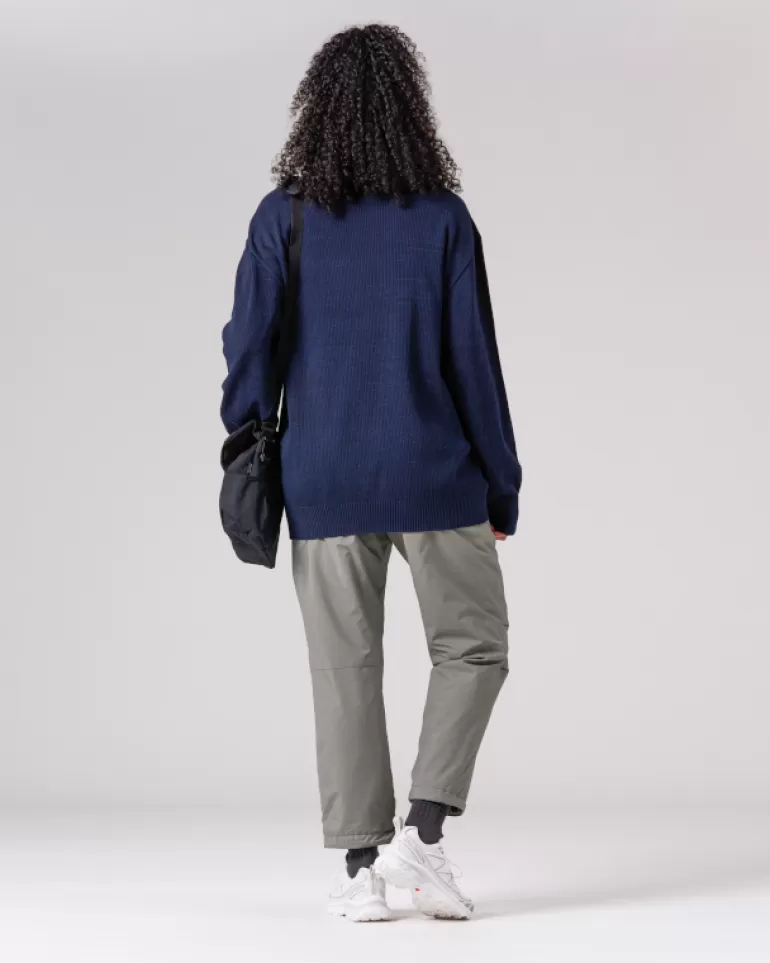 The Knit High Neck is a comfortable mock neck knit sweater. The sweater features rib-knit cuffs and collar, and a WholeGarment 3D-knit body that minimizes seams for a sleek and comfortable fit. The material blends cotton and nylon for durability, and recycled polyester for stretchability.